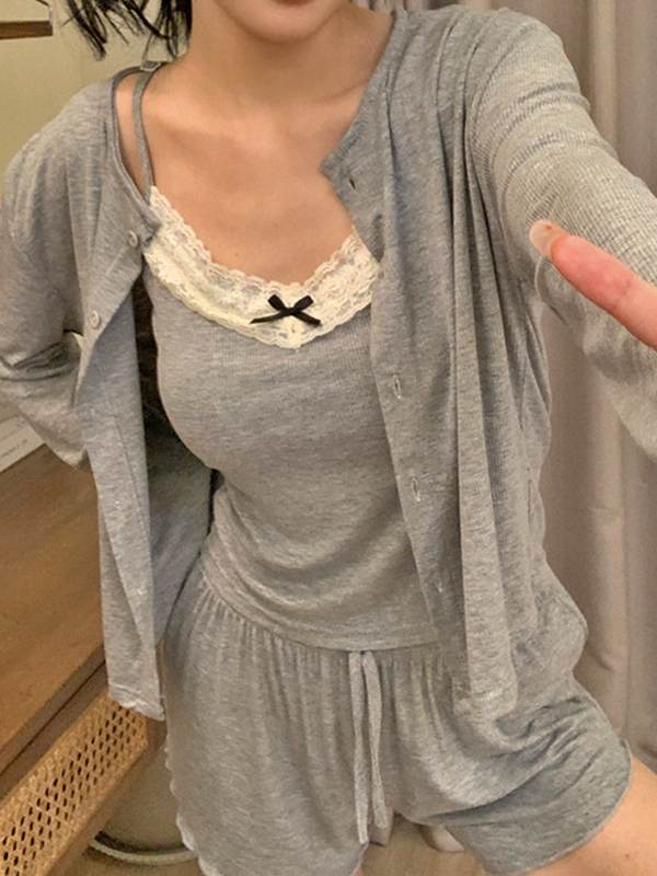 [캡내장] 무드그레이 3pcs 민소매 가디건 상하세트 파자마 잠옷