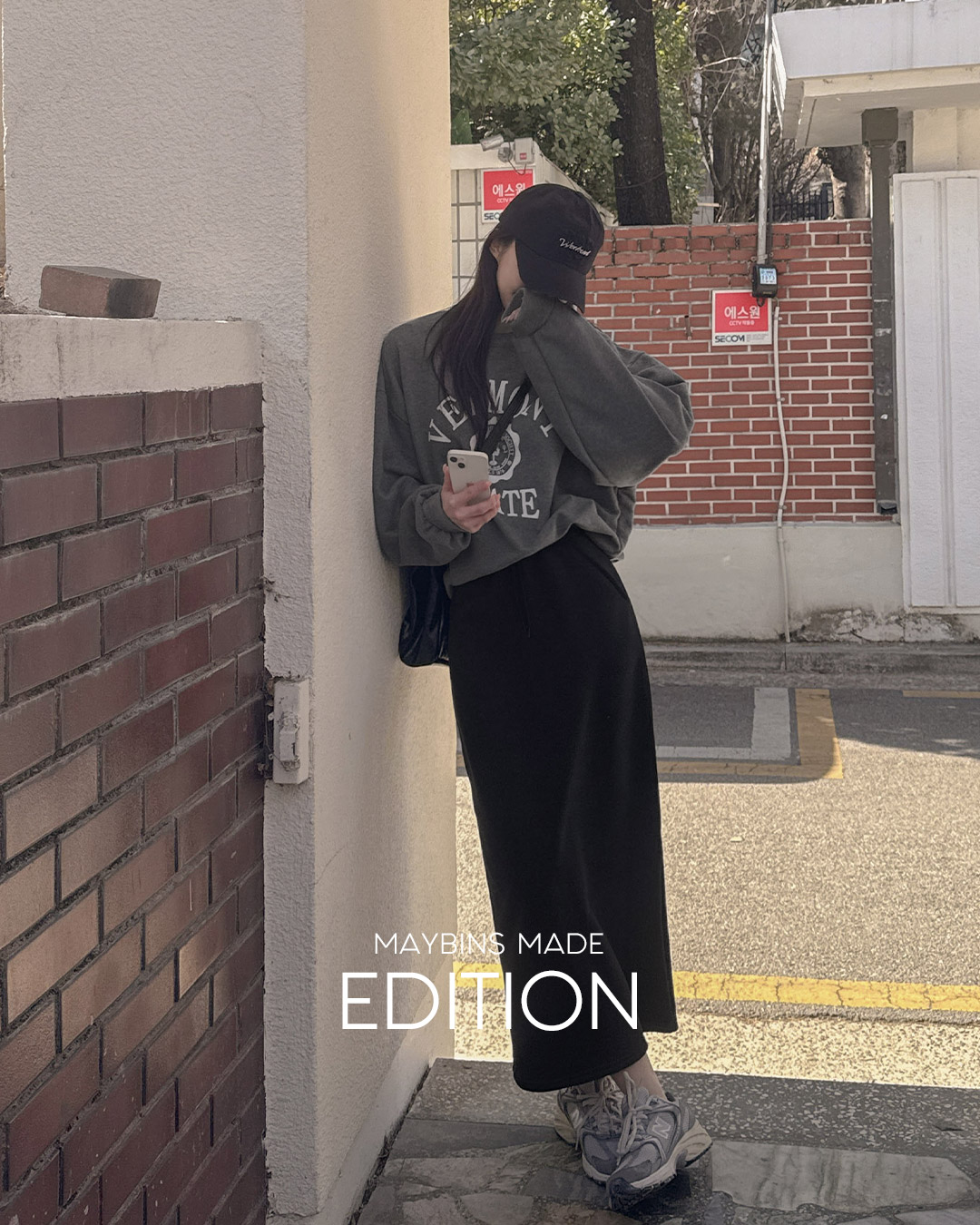 [무료배송/기획특가/MADE]이톤 밴딩 롱 스커트(자체제작 제작상품 치마 롱치마 롱기장 트레이닝스커트 추리닝 허리밴딩 안감기모 한파템 겨울 겨울스커트 데일리룩 마실룩 원마일웨어)