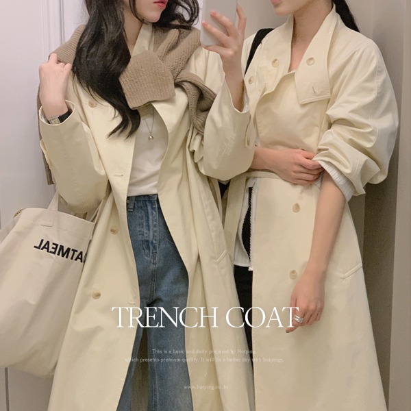 [하이퀄리티/코디만능템][MADE] 시온즈 하이넥 더블 롱 트렌치코트(44~110) (빅사이즈아우터-빅사이즈트렌치코트-루즈핏-오버핏-롱코트-봄아우터-하객룩-간절기아우터)