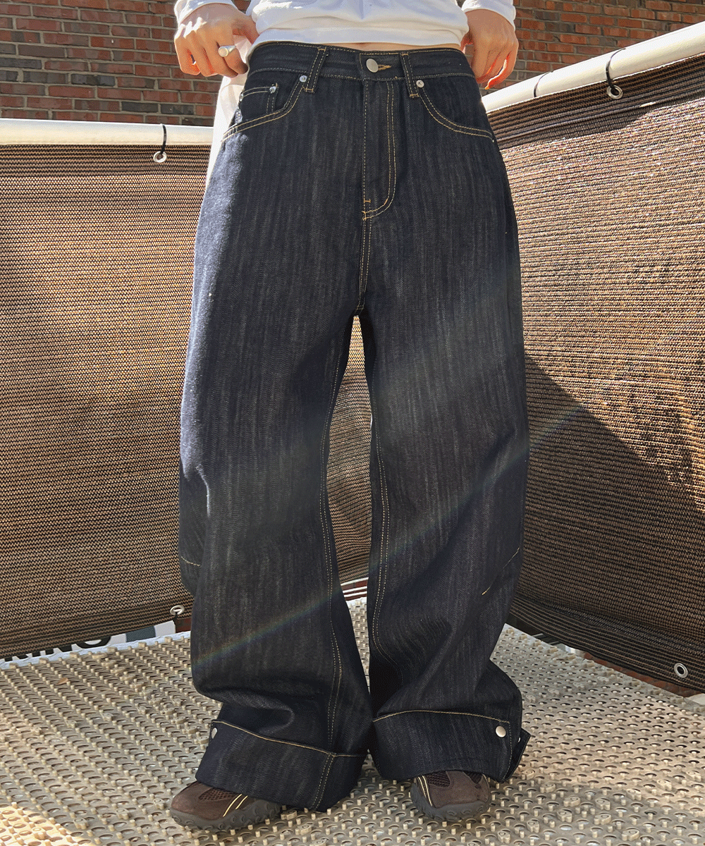 츠단 논페이드 스트레이트 스냅 데님팬츠