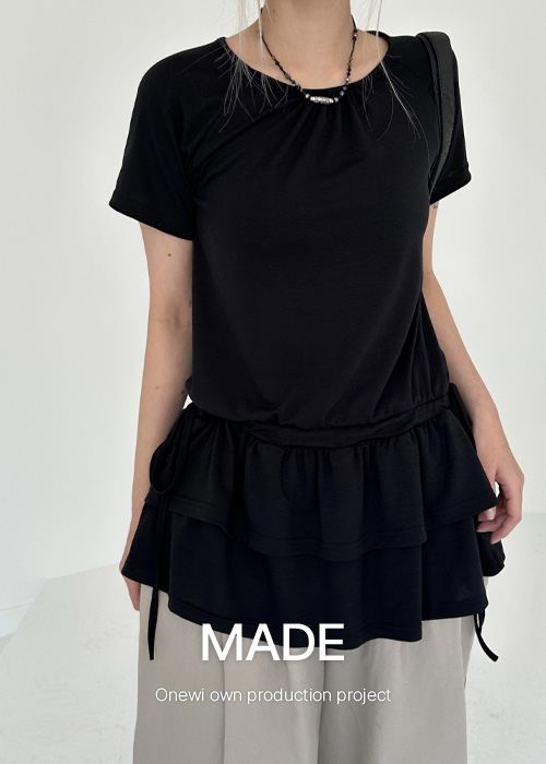 (MADE) 스트링 프릴 반팔 티셔츠