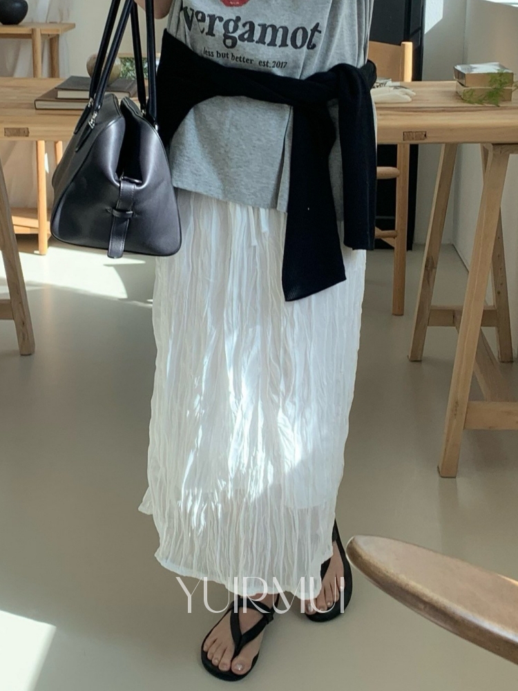 vergamot 베르가못 웨이브 셔링 밴딩 롱 스커트 2color