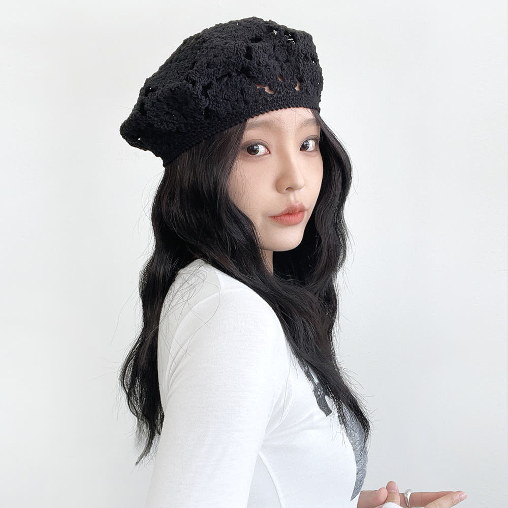[2col/신상할인] 힌 플라워 봄 여름 크로셰 면 니트 여성 베레모