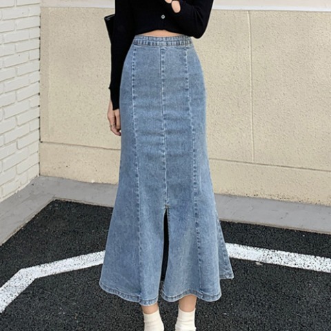 머메이드 트임 데님 봄 젤리데님롱스커트