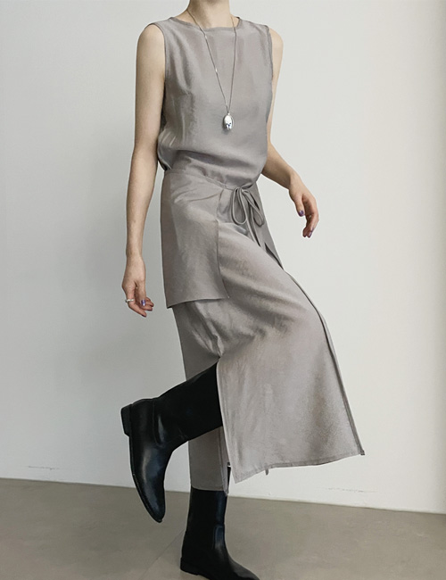 스위트 시스루 텐셀 레이어드 랩 스커트& 롱원피스 세트 [3color]