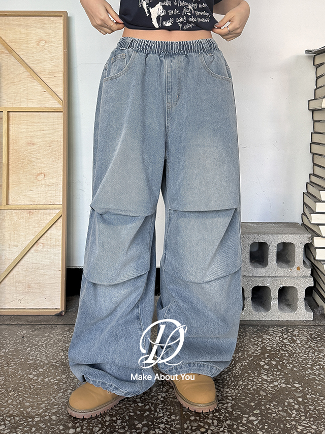[MADE] 빅사이즈 S-5XL 올밴딩 워싱 데님 투웨이 스트링 메가 와이드 파라슈트 팬츠