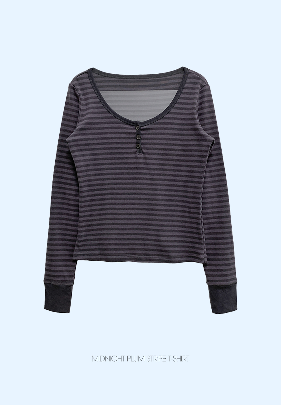 [ove-made/빠른출고] 미드나잇 플럼 스트라이프 가을 긴팔 티셔츠