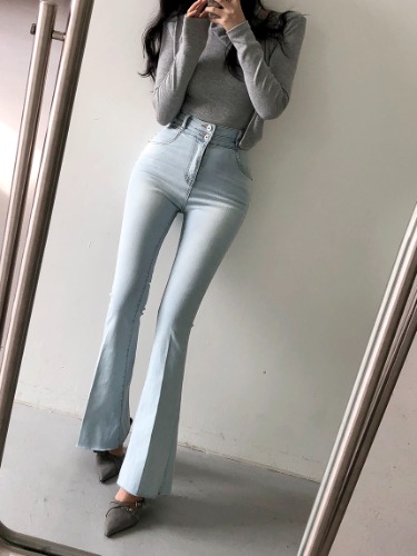 [허얇골넓]투버튼 파우더 워싱 데님 롱 부츠컷 팬츠