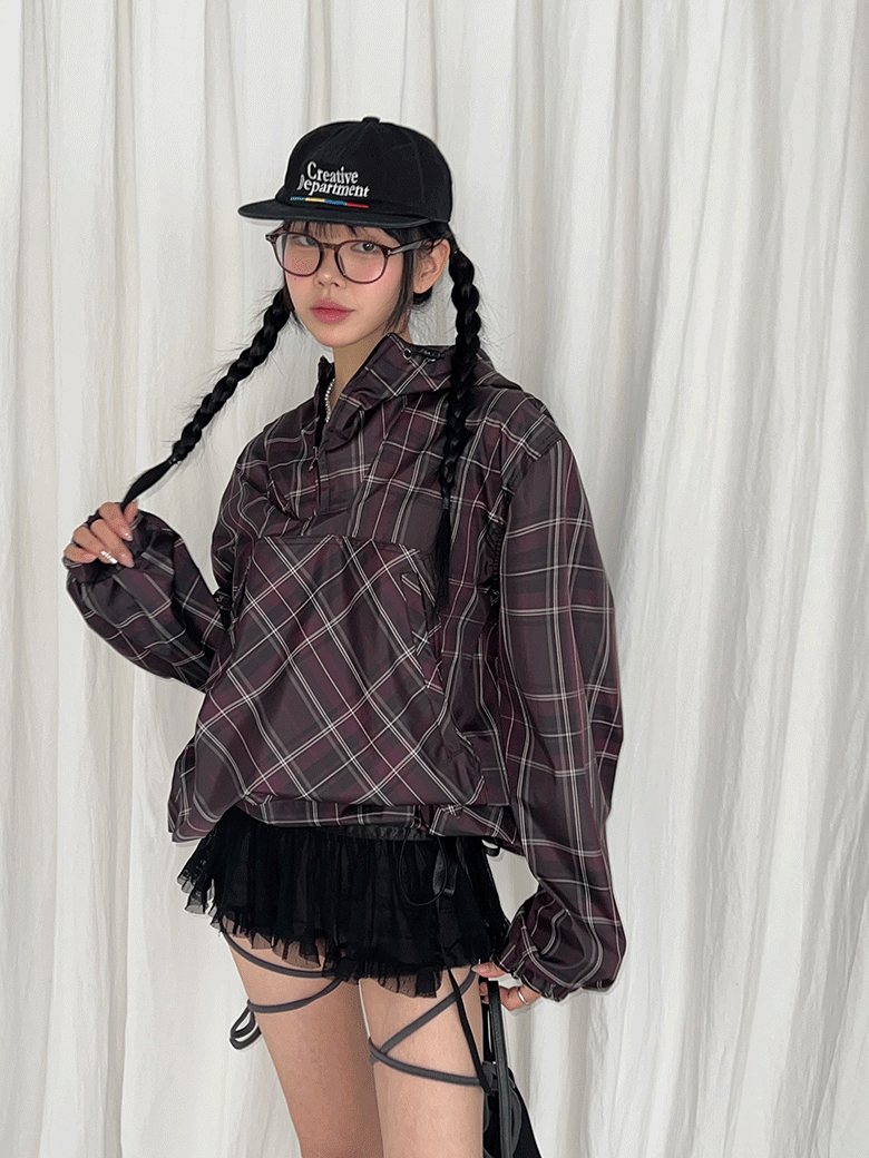 [주문폭주,7차 입고,UNISEX] 굿데이 체크 나일론 후드 아노락