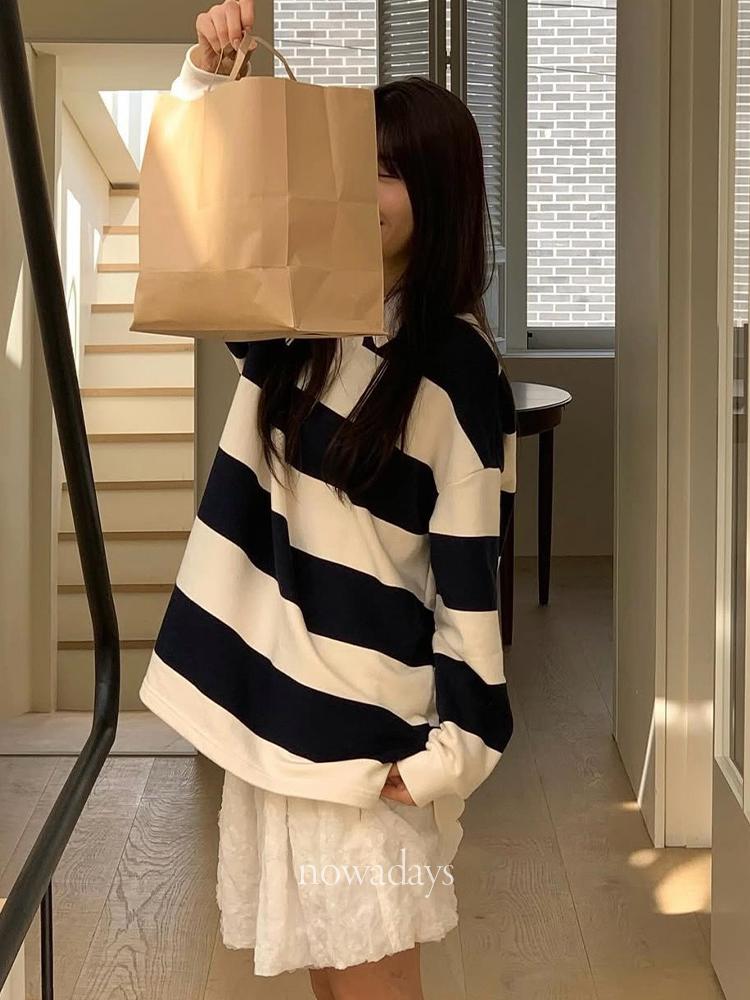 BR 럭비 카라 티셔츠 스트라이프 코튼 긴팔 단가라 t (4col)
