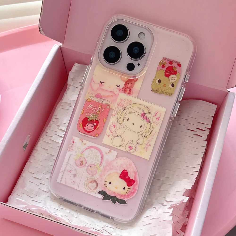 마모르 캐릭터 투명 범퍼 아이폰 16 15 14 13 프로 맥스 글리터 귀여운 디자인 케이스