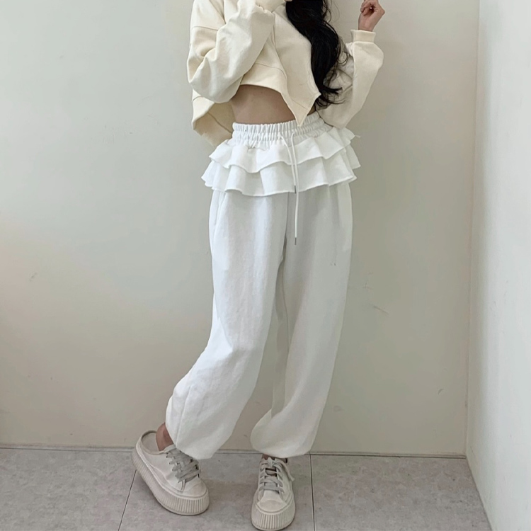 (당일출고) 밴딩 하이웨스트 루즈핏 쭈리 스트링 프릴 조거 트레이닝 추리닝 팬츠 바지 3color