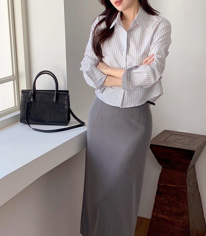 당일발송[🤍하객룩/출근룩][MADE] 로이 스트라이프 세미크롭 셔츠