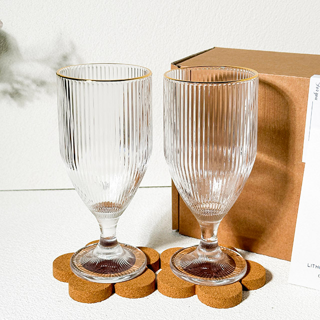 홈카페선물 골드 고블렛 세트 잔2+플라워코스터2+엽서1