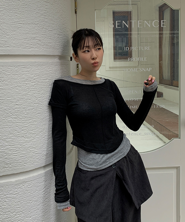 [SALE] 절개 레이어드 티셔츠 3color / 가을 봄 개강룩 이너티 기본 긴팔 롱슬리브 슬림 세미크롭 탑 라운드 얇은 쫄티 쫀쫀 힙한상의 배색 굴림 검정 트임 빈티지 여리핏