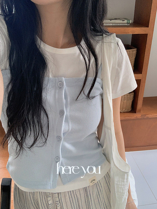 🌷유리에 단독🌷 유리 골지 버튼 탑 - 5color (뷔스티에/끈나시/레이어드/단추/슬림/데일리/여름신상/봄신상)