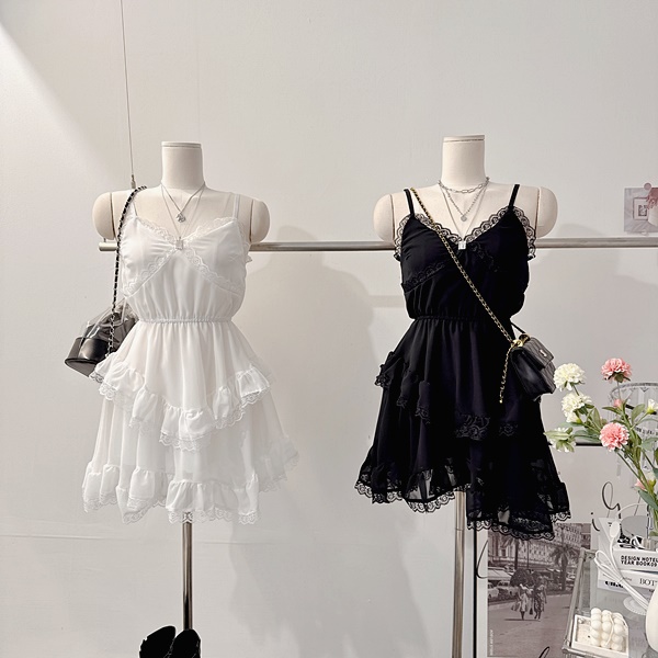 [페미닌!/하객룩!] 겨울 멜로 쉬폰 시스루 펀칭 레이스 셔링 프릴 언발 사선 오버핏 슬림핏 브이넥 레이어드 이너 무지 A라인 플레어 캉캉 슬립 뷔스티에 나시 미니 원피스 [2color]