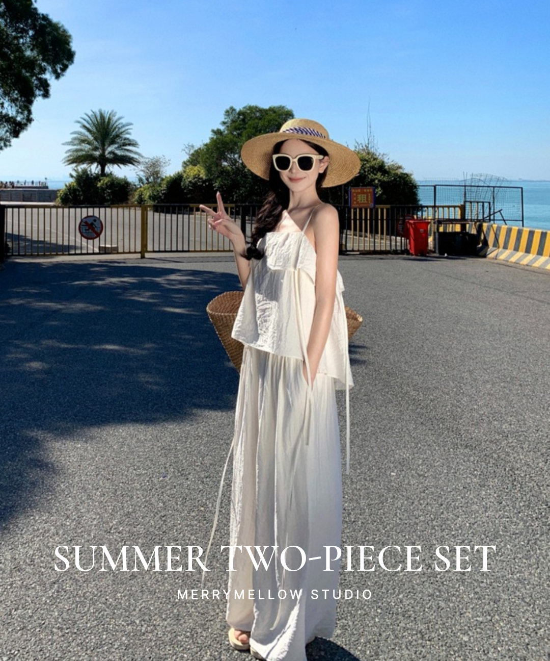 [휴양지/🌷키작녀] 내추럴 썸머 나시 팬츠 투피스 세트 (캉캉, 밴딩, 와이드)