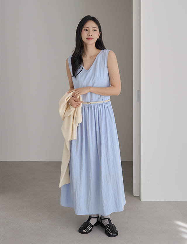 [2가지기장] 프리네 브이넥 셔링 숏앤롱 원피스 80504