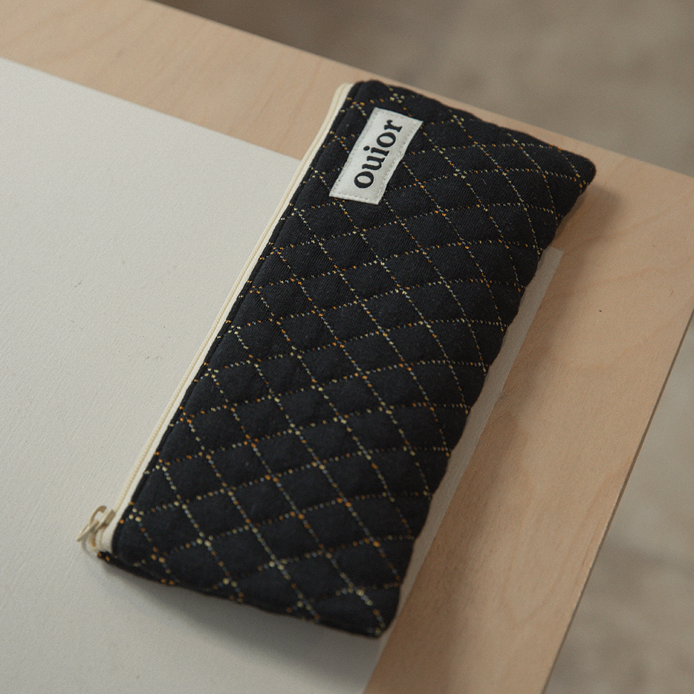 위올 플랫 펜슬케이스 - 퀼팅 블랙 (topside zipper)