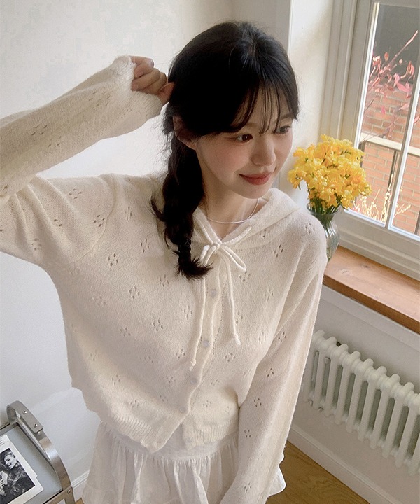 [울][봄]위시 아일렛 펀칭 후드 물결 니트 가디건 (3color)