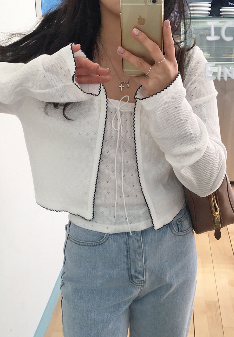 코즈 리본 펀칭 나시 가디건 세트 3color