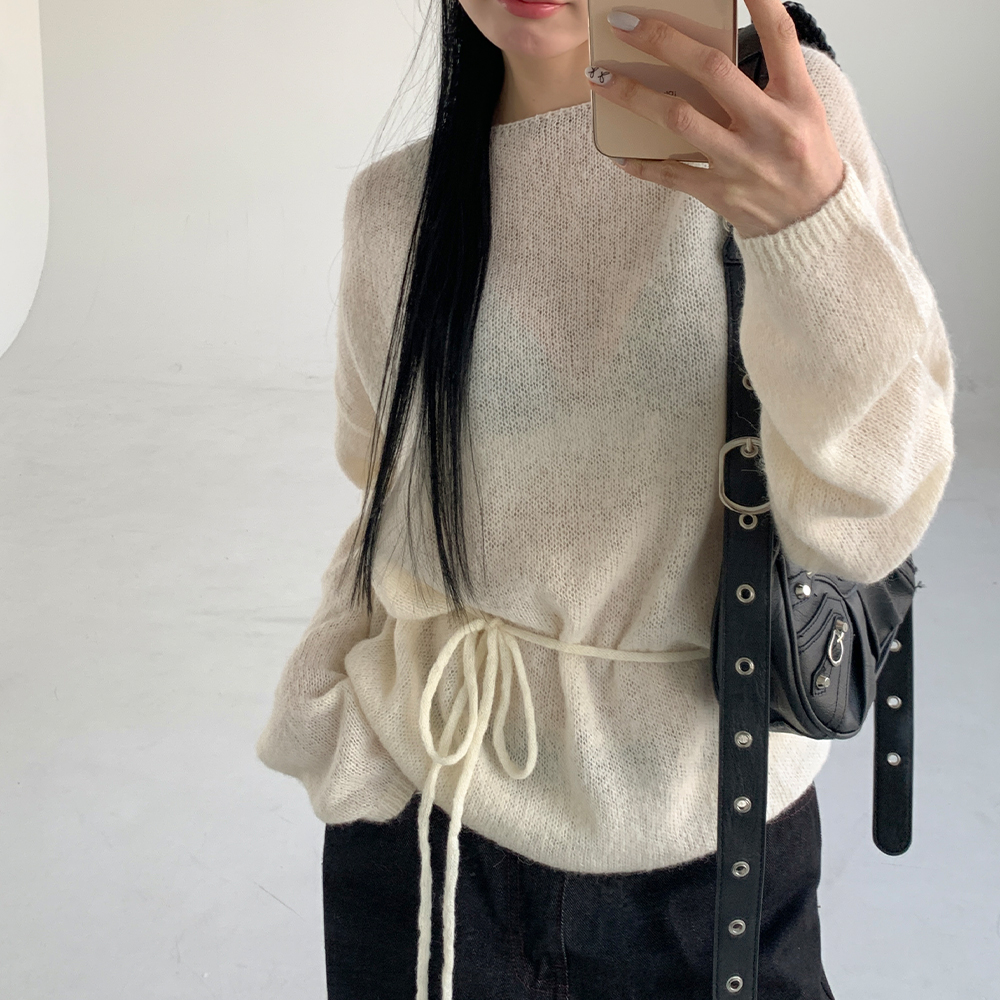 [무료배송][스트랩활용]톤톤 보트넥 울 니트 - 긴팔니트 봄 간절기 루즈핏 체형커버 여리핏 페미닌 꾸안꾸