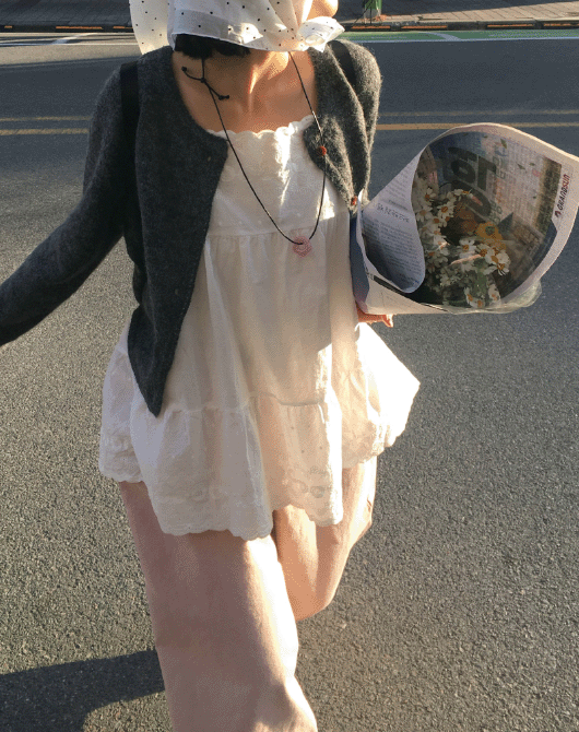 추천! 키키 빈티지 레이스 미디 끈나시 (2color)