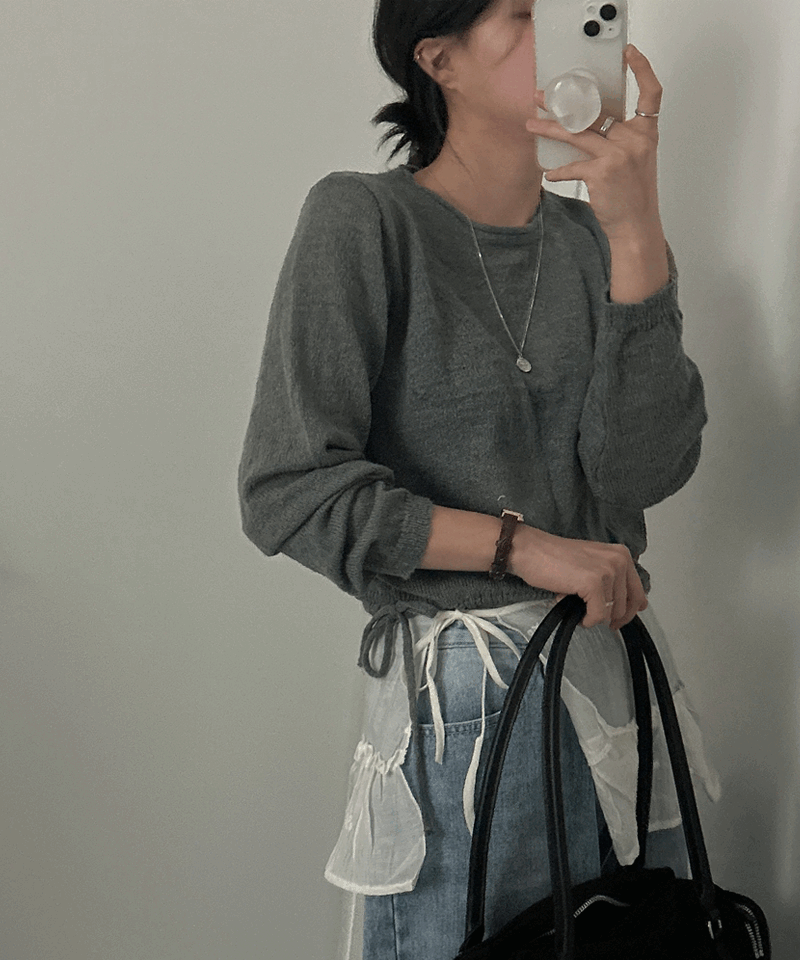 [밑단스트링/4color/여리여리] 스프링 밑단 스트링 여리여리 라운드 봄 니트