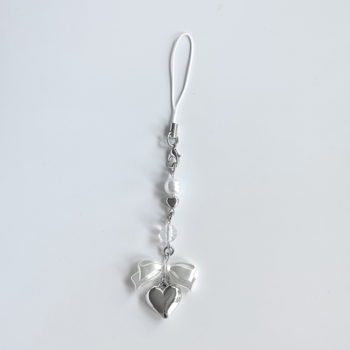 [MADE] 러블리 진주리본 실버하트 키링 비즈키링 에어팟키링 휴대폰줄 발레코어 청순 영롱 휴대폰키링 다이어리키링 콜북키링 바인더키링
