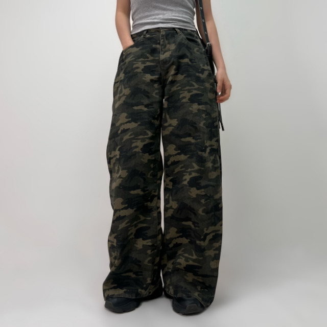 ~2XL[UNISEX🪖핏보장]투하츠 빈티지 밀리터리 카모 사이드핀턱 와이드 벌룬핏 팬츠 빅사이즈 캠핑 댄스 아이돌 바지
