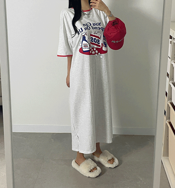 (*큐티/루즈핏*) 팝콘 배색 랍빠 반팔 롱 원피스 오버핏 빅사이즈 홈웨어 잠옷 파자마 마실룩