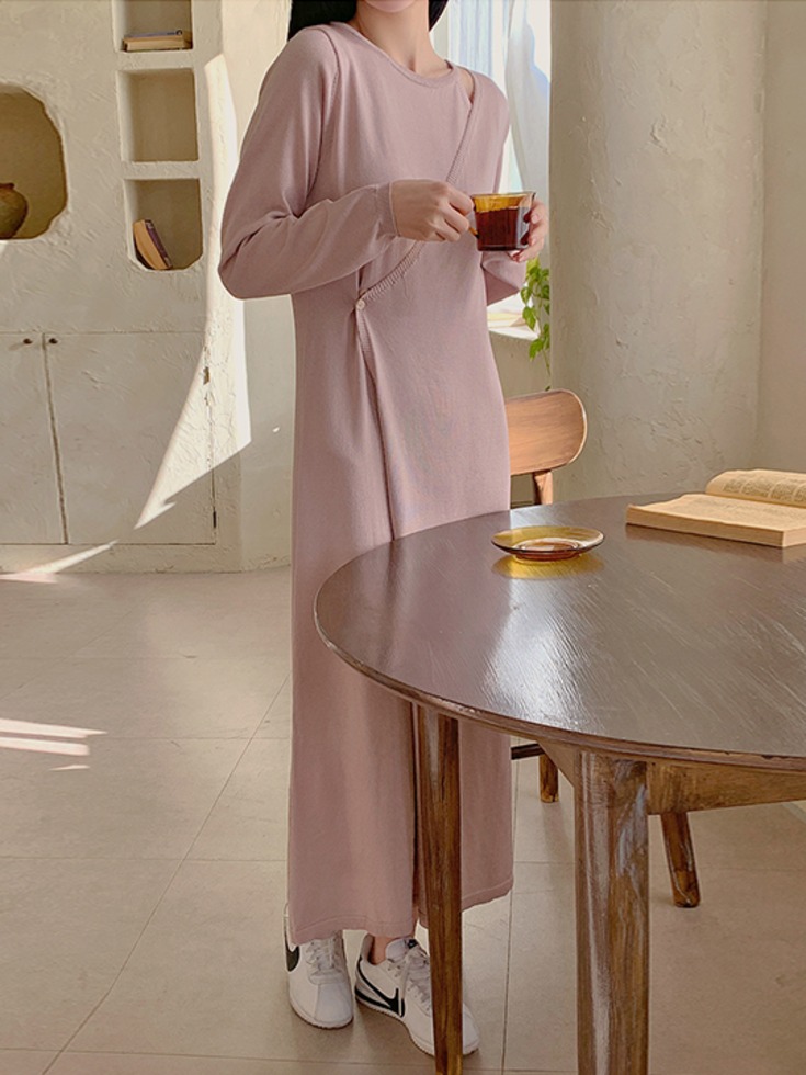 [군살부각X/소프트/여리루즈핏][44-120] 트웨딘 트임 랩 니트 롱 원피스(신상-봄-가을-겨울-일상룩-출근룩-데일리룩-데이트룩-빅사이즈-120사이즈-자체제작-트임-랩-니트원피스)