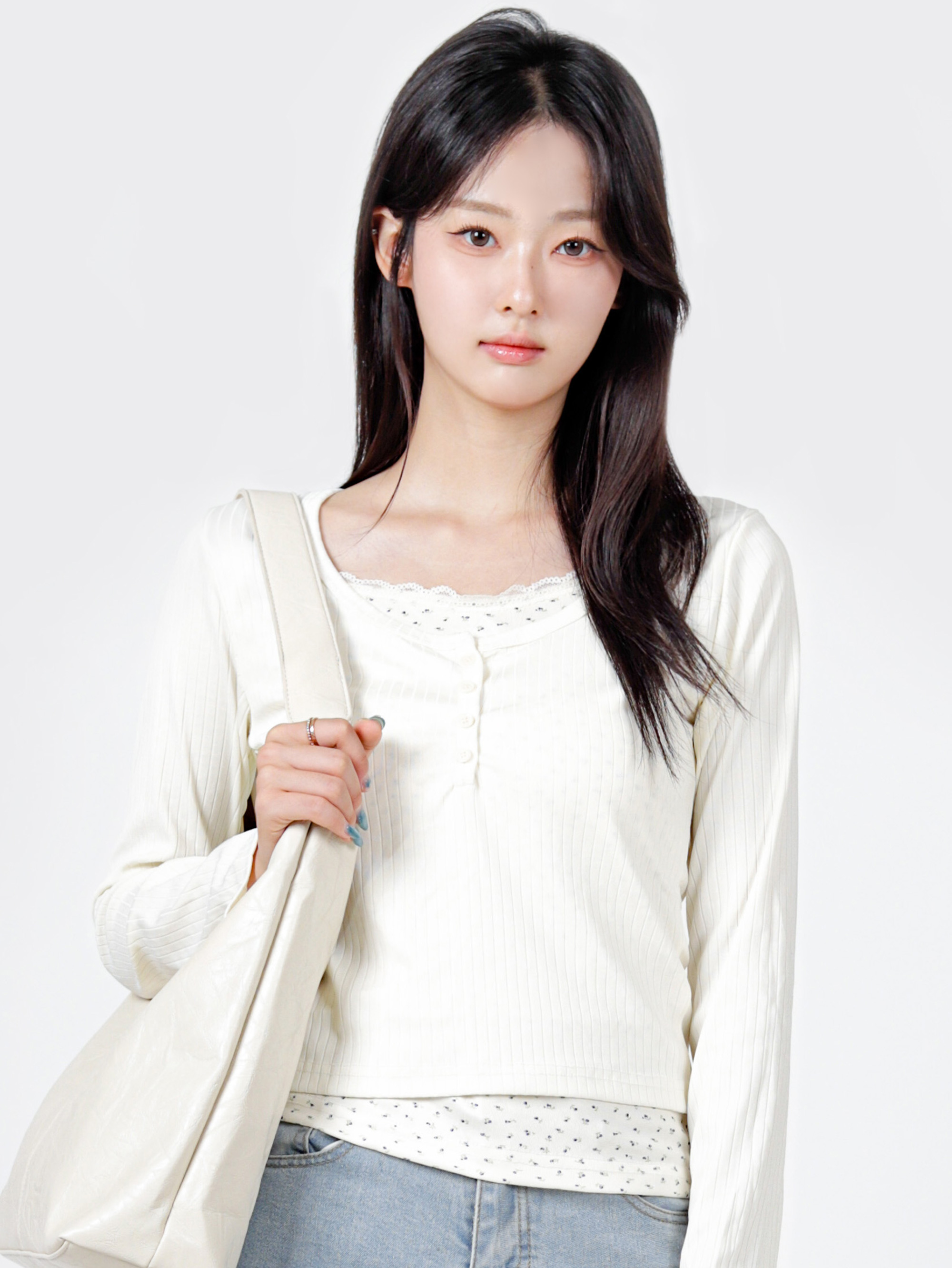 [EFT.] 로시 레이스 플라워 레이어드 긴팔티 (일체형)