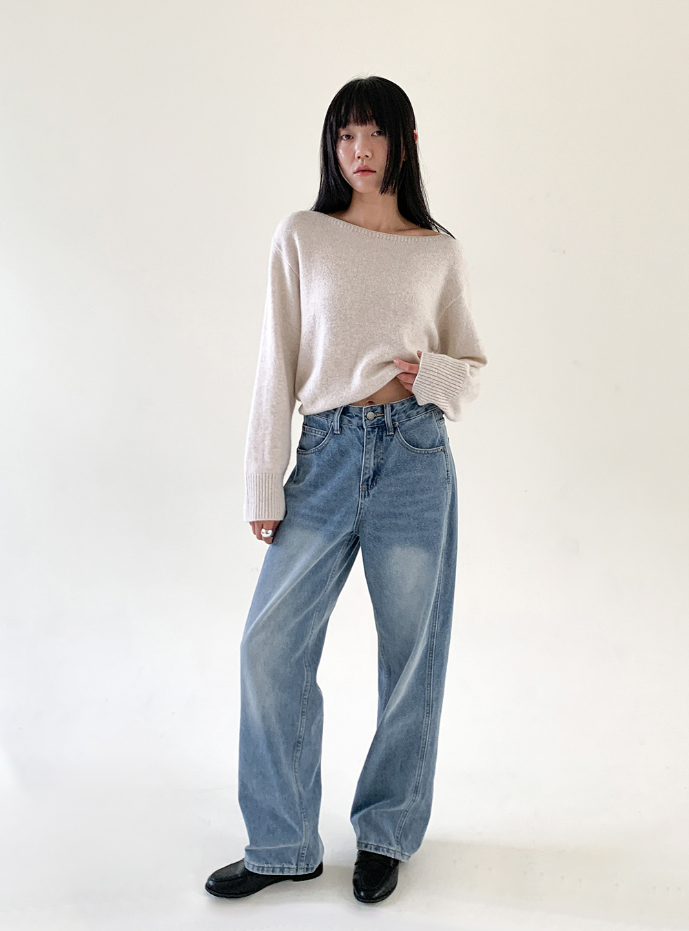 9085 진청 시그니처 일자 세미와이드 데님팬츠