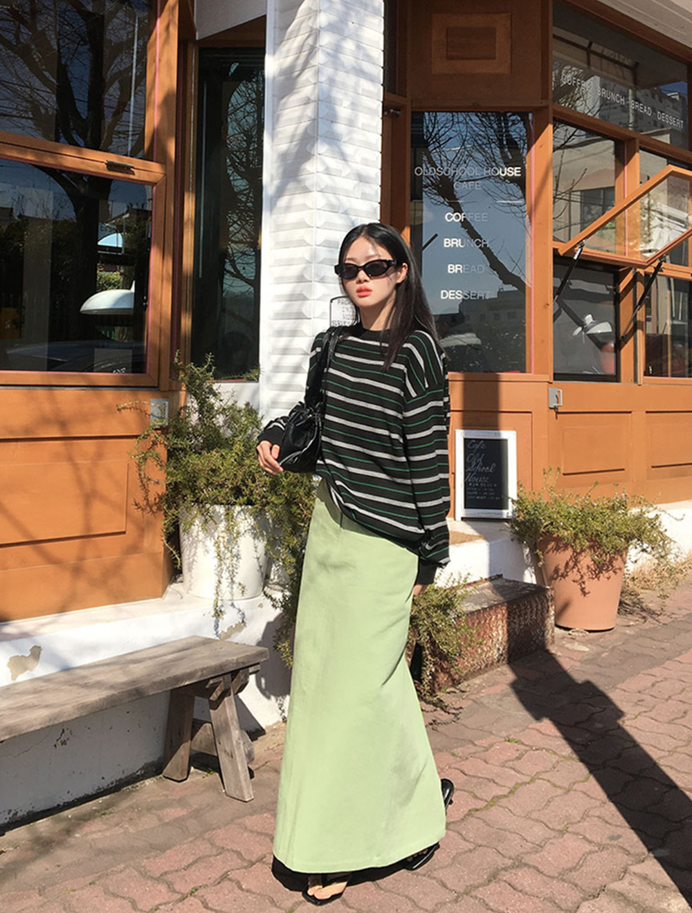 콜렌션 코튼 뒷슬릿 롱스커트 (2color)