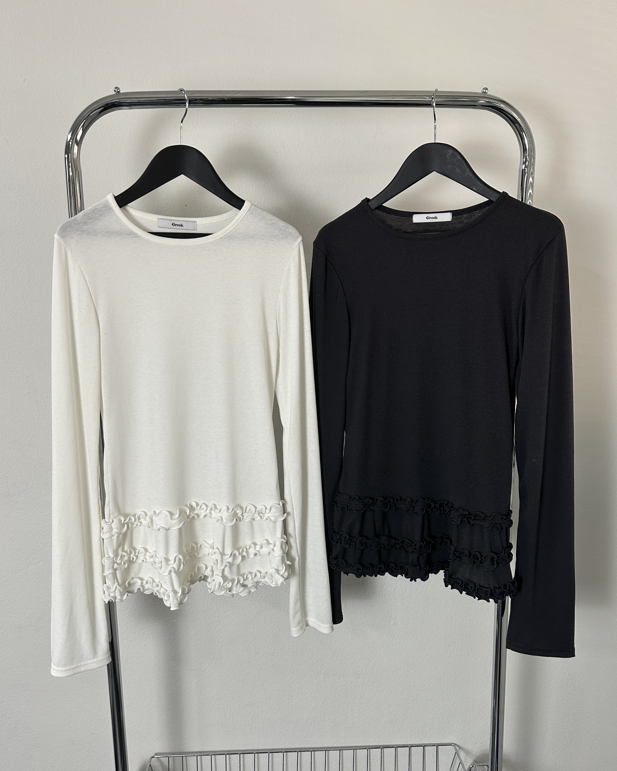 [2컬러/국내제작] 골지 프릴 레이어드 캉캉 긴팔 티셔츠