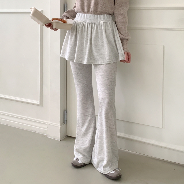 [올밴딩/레이어드] 얼리브 플레어 스커트 레깅스 팬츠 일체형 스판 부츠컷 치마 바지