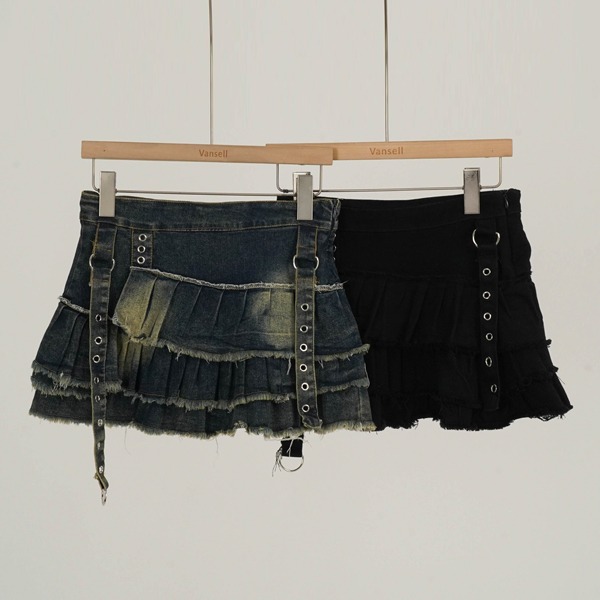 [S,M,L] 아일렛 캉캉 데님 미니스커트 속바지 청치마 데님스커트 마이크로숏츠 캉캉스커트 캉캉치마 플리츠 언발스커트