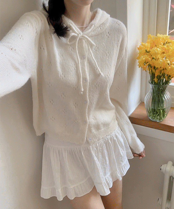 [울][봄]위시 아일렛 펀칭 후드 물결 니트 가디건 (3color)