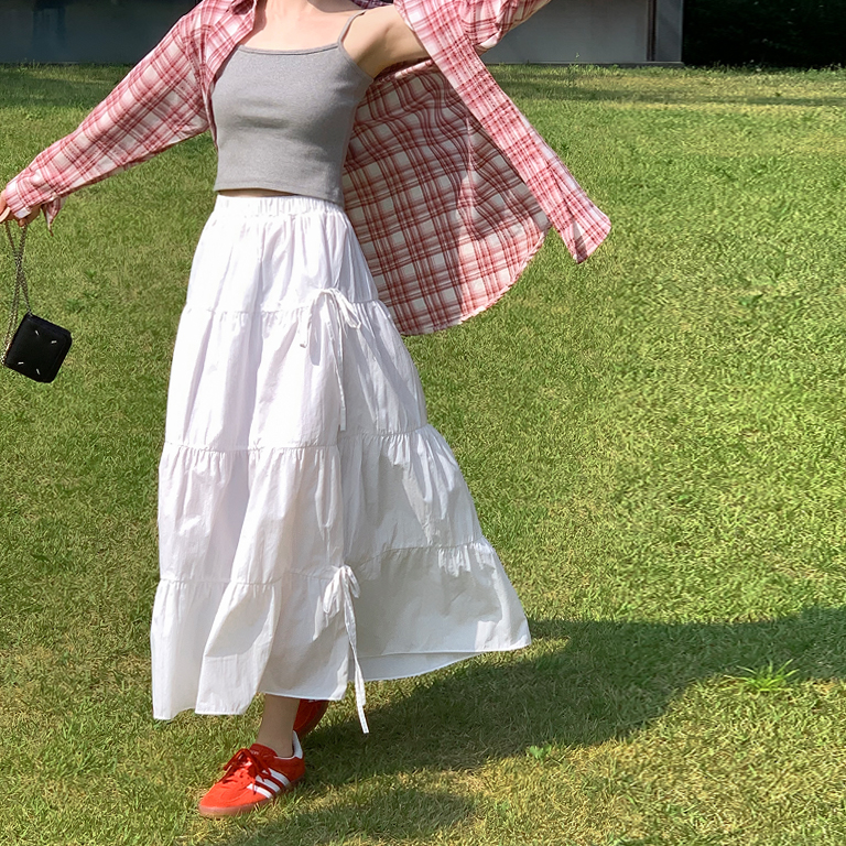 [캉캉스커트💙안감내장/간절기스커트/롱스커트/리본스커트/데이트룩/롱치마/데일리룩]다이닝리본캉캉스커트 - 5color