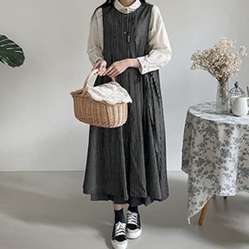 [20% SALE]스트라이프 랩스타일 롱원피스