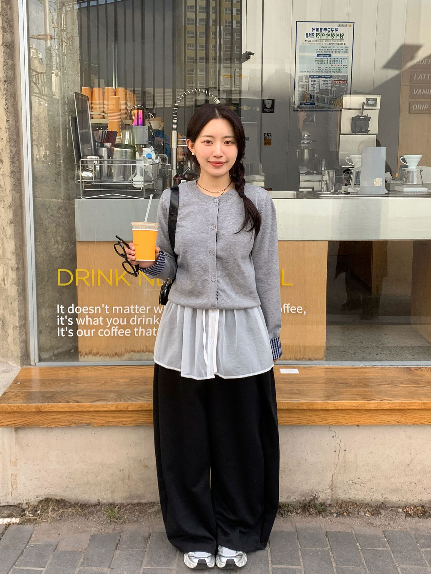 [EFT.] 라울 체크 셔츠 레이어드 니트 라운드 가디건 (일체형)