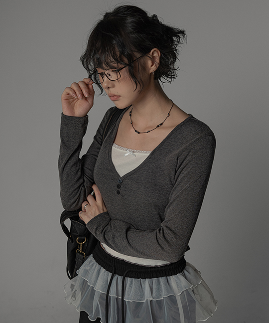 로타넬 브이넥 버튼 레이스 레이어드 티셔츠 V-NECK BUTTON LACE LAYERED T