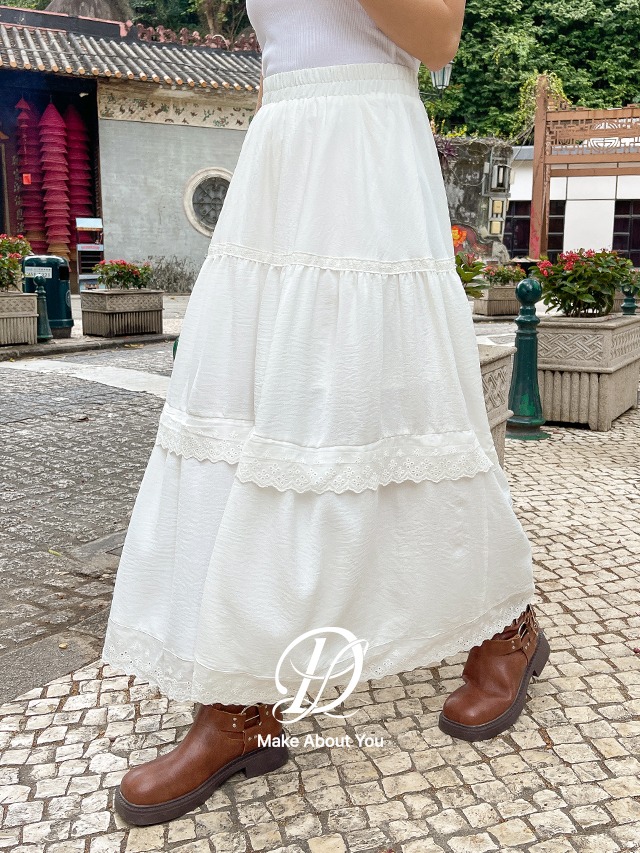 [1천장돌파][MADE] 빅사이즈 S-4XL 후르츠 링클 레이스 캉캉 플레어 밴딩 롱 스커트 휴양지 룩