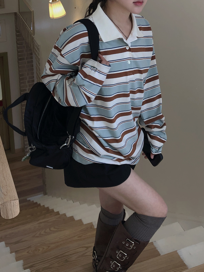 이오 럭비 스트라이프 루즈핏 긴팔 티셔츠 2col