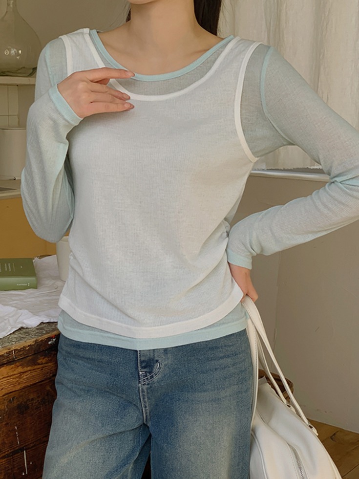 [여리여리/체형커버] [44-120] 웬니벌 배색 뷔스티에 레이어드 티셔츠(봄/신상/데일리룩/데이트룩/여행룩/캐주얼/트렌디/유니크/빅사이즈/120사이즈/자체제작/셔링/레이어드티)