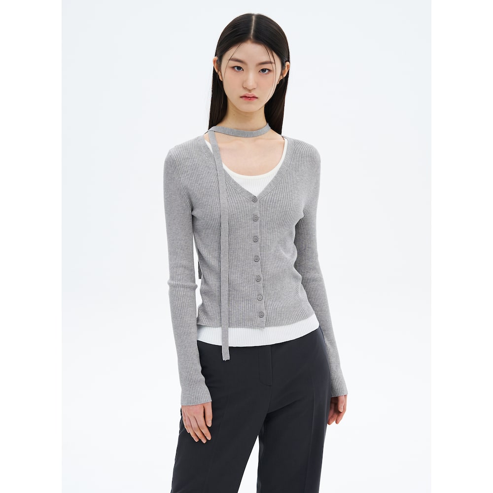리브드 타이 탈부착 카디건 라이트 그레이 (32535ALY22)