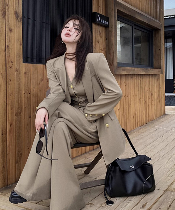 [코디세트 자켓+베스트+팬츠] 프렌치 3피스 클래식 수트정장셋업 (브라운,블랙)