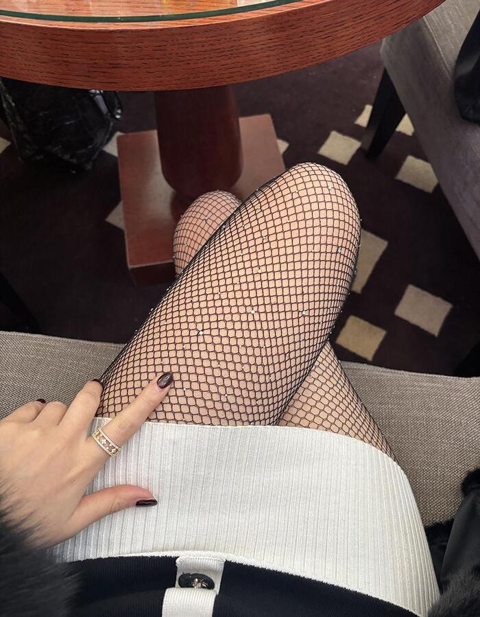크리스탈 스톤 큐빅 망사 스타킹